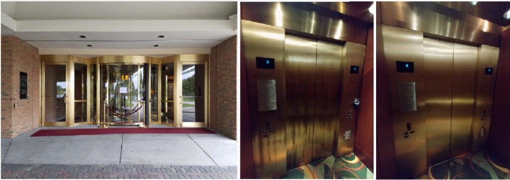Building entryways, revolving doors, wrapped columns, plaques, handrails. and elevators are all examples of the types of architectural metal surfaces OFS can maintain and restore.